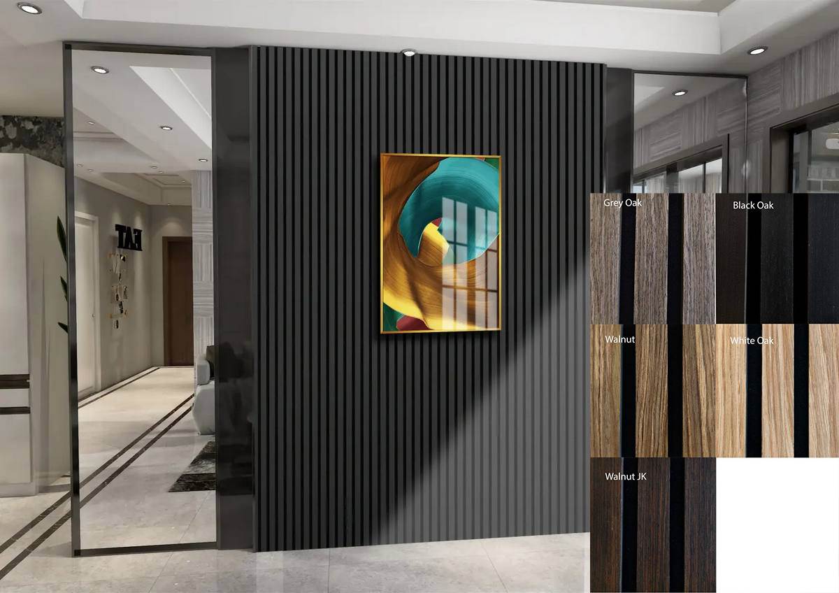 Podstawa jego konstrukcji jest podobna do naszych innych modeli, ale to drobiazgowa uwaga na detale i poziom wyrafinowania wyróżnia go na tle innych. Każda płachta forniru jest starannie dobierana, aby zapewnić jednolity wzór i nieskazitelne wykończenie, urzekające każdego, kto spojrzy na ściany. Krawędzie paneli są precyzyjnie cięte, a boki żeber pomalowane na elegancki czarny, dodając dodatkowej głębi i efektu optycznego do przestrzeni.