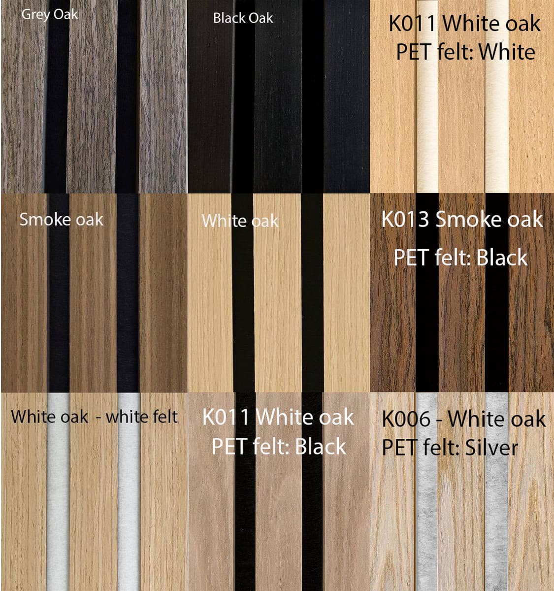 | Kolor | Black Oak z czarnym filcowym tyłem, Grey Oak z czarnym filcowym tyłem, K006 White Oak ze srebrnym filcowym tyłem, K011 White Oak z białym filcowym tyłem, K011 White Oak z czarnym filcowym tyłem, K013 Smoke Oak z czarnym filcowym tyłem, Smoke Oak z czarnym filcowym tyłem, White Oak z białym filcowym tyłem, White Oak z czarnym filcowym tyłem |